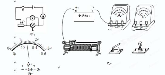 (3)移動(dòng)變阻器的滑片,使電壓表的示數(shù)為2.5V,此時(shí)電流表示數(shù)如圖丙所示,其值為 A,小燈泡的額定功率為