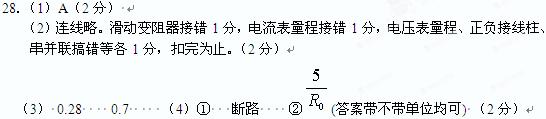 ④(2分)排除故障后,小王移動(dòng)滑動(dòng)變阻器的滑片,使電壓表的示數(shù)為0.8V時(shí),電流表的示數(shù)如圖所示,請(qǐng)?jiān)诒砀裰姓_填寫讀數(shù),并計(jì)算燈絲電阻。(計(jì)算保留一位小數(shù))
