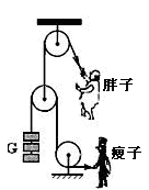 如圖是胖子和瘦子兩人用滑輪組鍛煉身體的簡(jiǎn)易裝置(不考慮輪重和摩擦)。使用時(shí):瘦子固定不動(dòng),胖子用力FA拉繩使G勻速上升;胖子固定不動(dòng),瘦子用力FB拉繩使G勻速上升。下列說(shuō)法中正確的是: