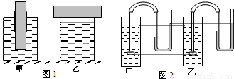 解答:解:圖中可以發(fā)現(xiàn)甲圖中U形管中液面的高度差>乙圖中U形管中液面的高度差,說明甲容器內(nèi)液體壓強探測器處的液體壓強>乙容器內(nèi)液體壓強探測器處的液體壓強,由圖可知兩探測器處深度相同,再根據(jù)P=ρgh變形ρ=,ρ與P成正比,可得ρ1大于ρ2