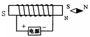 根據(jù)圖中小磁針靜止時(shí)的指向,在圖中標(biāo)出通電螺線管的N、S極和電源的正負(fù)極。
