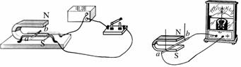 D.在右圖中,電路閉合,導(dǎo)體ab左右運(yùn)動(dòng),電路中有感應(yīng)電流
