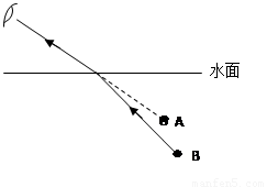 如圖,某人在水池邊看到水池底有一塊鵝卵石在如圖A處,請畫出光路圖,確定