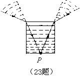 一個(gè)干枯的井底正中央P點(diǎn)趴著一只青蛙如圖(a)所示。天降大雨時(shí)井中全部灌滿水,若青蛙仍在P點(diǎn),它的視野將發(fā)生變化。請(qǐng)你在圖7(b)中利用光路圖確定青蛙視野變化的大致范圍,并用陰影表示出來(lái)。