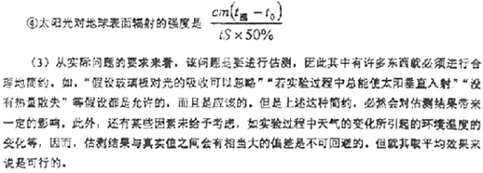 (1) 透過玻璃板的太陽光能量占太陽輻射到玻璃板上的能量的百分之幾?你在得出這個結(jié)論時做了什么假設(shè)?假設(shè)的根據(jù)是什么?