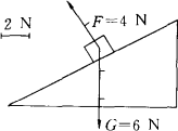 如圖所示,是一個重為6 N的物體靜止在斜面上,它對斜面的壓力為4 N.請在圖中畫出物體所受重力和支持力的圖示.