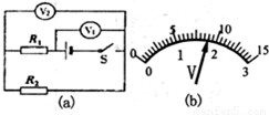 在如圖(a)所示電路中,當閉合開關(guān)后,兩個電壓表指針偏轉(zhuǎn)均如圖(b)所示,則電源電壓及電阻R1和R2兩端的電壓分別是多少?(寫出計算過程和并必要文字說明)