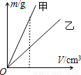 小強(qiáng)同學(xué)在探究甲、乙兩種物質(zhì)的質(zhì)量和體積的關(guān)系時,得出了如圖所示的圖象.由圖象分析可知( )