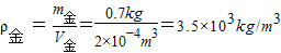 有一只玻璃瓶重為1N,當裝滿水時重為4N。若在瓶中輕輕放入重7N的一些金屬顆粒,待水溢出后,稱得其總重為9N。(g=10N/kg)求: