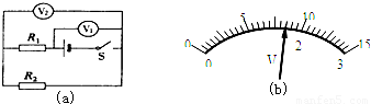 解答:解:(1)由電路圖知,兩電阻R1與R2串聯(lián),電壓表V1測電源電壓,電壓表V2測電阻R2兩端的電壓;