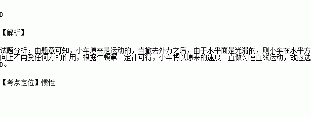 一小車在水平拉力F的作用下,在光滑的水平面上做加速直線運(yùn)動(dòng),撤去拉力F后,小車將( )