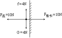 如圖所示,在豎直懸掛的帶有磁性的黑板上,吸有一塊重4N的小鐵塊,小鐵塊靜止不動.若磁性黑板與鐵塊間的吸引力是10N,請用力的圖示表示出鐵塊所受的各力,并在圖中標出各力的大。