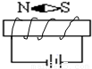 在螺線管線圈正上方用彈簧吊著一個(gè)鐵塊,如圖所示,當(dāng)線圈通以如圖所示的電流時(shí)鐵塊下降,彈簧伸長(zhǎng),由此可知