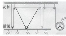 如圖所示為一種手搖升降晾衣架示意圖它由4個定滑輪和兩個動滑輪組成,繩子的尾端繞在一個固定在墻壁的旋輪上,旋轉(zhuǎn)搖柄可以使晾衣架升降假設在升降過程中衣架橫梁保持水平,請回答下列問題:
