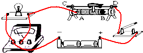 第二種情況:小燈泡較暗時(shí),他是把兩導(dǎo)線的端點(diǎn)分別與滑動(dòng)變阻器的