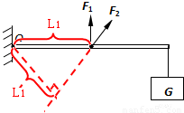 解答:解:第一次杠桿在重物G和力F1的作用下處于水平位置平衡時,F(xiàn)1的力臂為O到F1作用點的桿長L1,重力G和重力的力臂L2,由杠桿平衡條件可得: