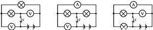 解答:解:1、如果兩燈串聯(lián),則電流從電源正極出發(fā),分別經過開關、已有的燈泡以及另一個燈泡回到電源負極,因此最上面〇中為燈泡,另外兩個〇內為電壓表;