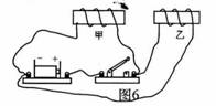 如圖所示,當(dāng)開關(guān)閉合后,兩螺線管向相反方向運(yùn)動,請你把乙螺線管的導(dǎo)線連入這個(gè)電路(導(dǎo)線不能交叉)。