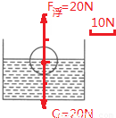 解答:解:木塊在水中漂浮,在豎直方向上,木塊受豎直向下的重力G=20N,豎直向上的浮力F,在這兩個力的作用下,木塊處于平衡狀態(tài),