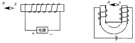 解答:解:圖1中小磁針N極向左,即該點(diǎn)磁感線向左,因電磁鐵外部磁感線由N極指向S極,故電磁鐵左側(cè)為N極,由右手螺旋定則可知電流由左側(cè)流入,即電源左側(cè)為正極;