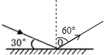 解答:解:一束光射到平面鏡上,與平面鏡的夾角是30°,則入射角為90°-30°=60°,根據(jù)光反射定律,反射光線、入射光線分居法線兩側(cè),反射角等于入射角,可得反射角也是60°.如下圖所示: