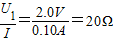在如圖所示的電路中,電源電壓為3V,開關(guān)閉合后,電流表和電壓表的讀數(shù)分別是0.10A和2.0V,則通過R2的電流是______A,R2兩端的電壓是______V,R1的電阻是______Ω.