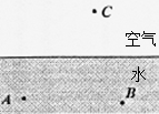 如圖9所示,潛水員眼睛在水下A點處,水中的B點有條小魚,空中的C點有只小鳥,請作出潛水員觀察魚、鳥的光路圖.![]()