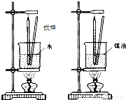 【答案】分析:①水和煤油只有受熱均勻,我們才可以準確測量液體的溫度從而得出水和煤油吸熱升溫特點;