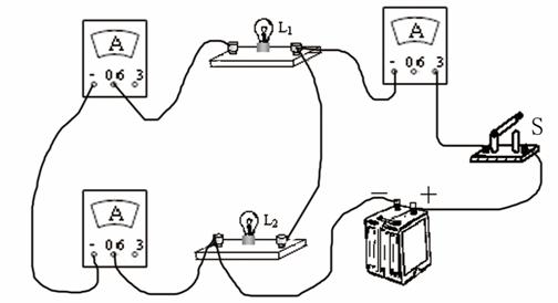 在探究并聯(lián)電路電流規(guī)律的實(shí)驗(yàn)中,甲是實(shí)驗(yàn)電路圖。(6分)