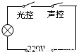 樓道里,夜間只是偶爾有人經(jīng)過(guò),電燈總是亮著會(huì)浪費(fèi)電能.科研人員利用光敏材料制成“光控開(kāi)關(guān)”,天黑時(shí)自動(dòng)閉合;天亮?xí)r自動(dòng)斷開(kāi).利用聲敏材料制成“聲控開(kāi)關(guān)”,當(dāng)有人走動(dòng)發(fā)出聲音時(shí),自動(dòng)閉合;無(wú)人走動(dòng)時(shí),自動(dòng)斷開(kāi).若將這兩個(gè)開(kāi)關(guān)配合使用(如圖),就可以使樓道燈變得“智能化”,這種“智能”電路正確的是( )