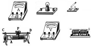 如圖所示的實(shí)驗(yàn)器材,現(xiàn)用電流表、電壓表分別測出通過燈泡的電流和燈泡兩端的電壓,電路中電流約為0.5A,并用變阻器改變小燈泡的電流,要求滑片向右滑動時燈泡變亮。