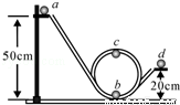 如圖所示,質(zhì)量為40g的金屬小球從導(dǎo)軌的a處自由滑下,依次經(jīng)過(guò)b處、c處,到達(dá)d處時(shí)恰好停下.在從a到b的過(guò)程中,重力做功為 J;在整個(gè)運(yùn)動(dòng)過(guò)程中,小球克服導(dǎo)軌摩擦消耗的機(jī)械能為 J.(g=10N/kg)![]()