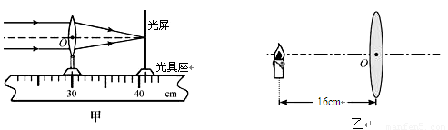 (1)如圖甲所示,一束平行于凸透鏡主光軸的光線經(jīng)過(guò)凸透鏡后,在光屏上形成了一個(gè)最小、最亮的光斑。由圖可知,凸透鏡對(duì)光線具有 作用,該凸透鏡的焦距是 cm。