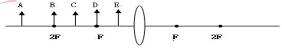(3)如下圖所示:在實(shí)驗(yàn)時(shí),小明同學(xué)分別把點(diǎn)燃的蠟燭放在A、B、C、D、E的位置,請(qǐng)你利用學(xué)過的知識(shí)幫他分析一下: