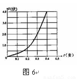 圖6是一個(gè)小燈泡的電流和電壓變化規(guī)律圖像,物理學(xué)中叫做伏安特性圖像。由圖像可知,當(dāng)小燈泡在U=4V時(shí),燈泡燈絲的電阻為________Ώ;當(dāng)小燈泡中流過0.3A的電流時(shí),它消耗的功率是___________W。