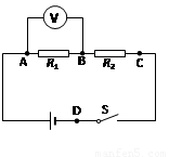 在圖所示的電路中,電源電壓保持不變,R1與R2為兩個(gè)阻值不等的電阻,R1的阻值為10歐。選擇合適的電壓表量程并將其接在AB兩點(diǎn)間后,閉合電鍵S,電壓表的示數(shù)為2伏。