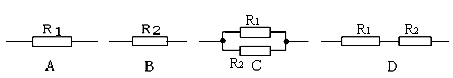 .將R1、R2(R1> R2)按照下圖中四種不同接法分別接在右下圖中MN兩端(電源