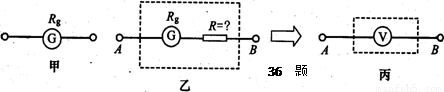 (2)如圖乙所示,若將這電流表串聯(lián)一個(gè)定值電阻R后,使通過(guò)G的電流為3mA時(shí),A、B 之間的電壓等于3V,這樣A.B之間(虛線框內(nèi))就相當(dāng)于一個(gè)量程為0~3V的電壓表(圖丙),求串聯(lián)的定值電阻R的大小。