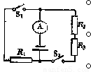 (4分)如圖所示,電源兩端的電壓為6V,且保持不變,已知R1+R2=12Ω,當開關S1閉合、S2斷開時,10s內電流通過R1產(chǎn)生的熱量是60J;當開關S1斷開、S2閉合時,電流表示數(shù)為0.6A,則電阻R3的阻值是___________Ω。