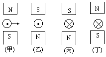 如圖所示,根據(jù)圖(甲)通電導(dǎo)體受力情況畫(huà)出(乙)、(丙)、(丁)圖中通電導(dǎo)體受力運(yùn)動(dòng)的方向.