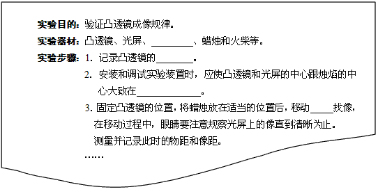 在“驗(yàn)證凸透鏡成像規(guī)律”的實(shí)驗(yàn)中,小明設(shè)計(jì)的實(shí)驗(yàn)報(bào)告(部分)如下,請(qǐng)?zhí)顚?xiě)空格處的內(nèi)容。