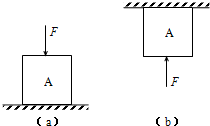 如圖(a)、(b)所示,大小為29.4牛的力F沿豎直方向分別作用在同一實(shí)心正方體A的中央.正方體A的質(zhì)量為2千克,邊長(zhǎng)為0.1米.在圖(a)中,水平支撐面為地面;在圖(b)中,水平支撐面為天花板.求: