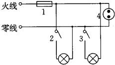 如圖所示是家庭電路的一部分,元件“1”是保險絲,“2”、“3”是開關(guān),“4”是插座.下列敘述中正確的是( 。
