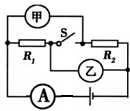 如圖所示電路,電源電壓6V保持不變.若在甲、乙兩處分別接入電壓表,閉合開關S,甲、乙兩表讀數(shù)之比為1:2;斷開開關S,在甲、乙兩處分別接入電流表,乙處電流表示數(shù)為O.6A,此時,電流表A的示數(shù)及R2消耗的電功率分別是(  )