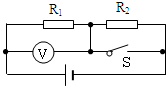如圖所示,電源電壓一定,開關(guān)S斷開和閉合時,電壓表的示數(shù)之比為4:9,
