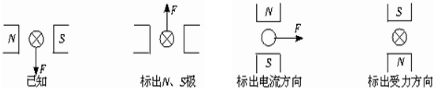 如圖,表示導(dǎo)線垂直紙面且電流方向向里;表示導(dǎo)線垂直紙面且電流方向向外,請(qǐng)按要求作圖.