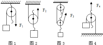 用如圖所示四種裝置勻速提升重為15N的物體,每個滑輪重為3N,不計繩重和摩擦,則所用拉力分別為:F1=