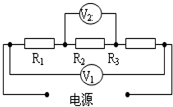 如圖所示電路,三個電阻串聯在一電路中,R1=4Ω,R3=8Ω,電壓表V1的示數為14V,V2的示數為2V,則R2的電阻是( 。
