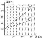用兩個相同的“熱得快”,分別給質(zhì)量、初溫都相同的甲、乙兩種液體同時加熱.兩種液體的溫度隨時間變化的圖象如圖所示,已知甲液體的比熱容為1.8×103J/(kg?℃),則乙液體的比熱容是