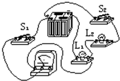 如圖所示的實物連接圖,當S1、S2都閉合后,電壓表所測的是              ( 。